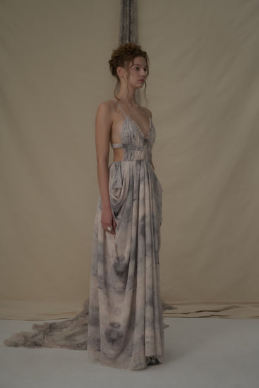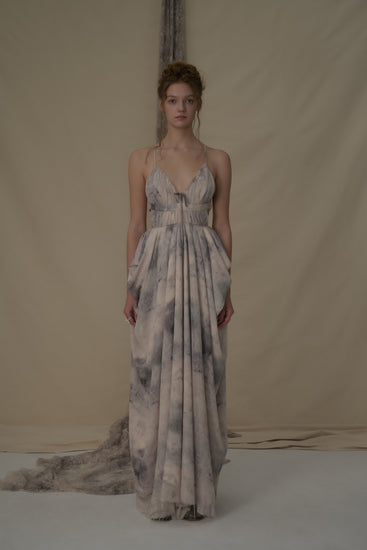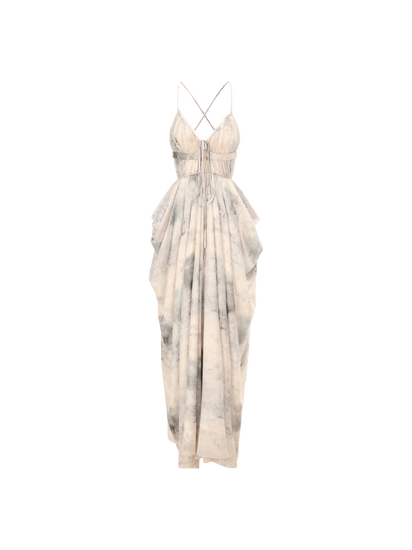 Beige Printed Backless Camisole Dress