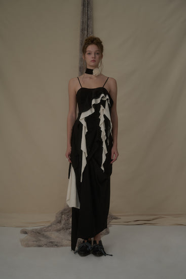 Black And White Deconstructed Flutter Piece Camisole Long Dress