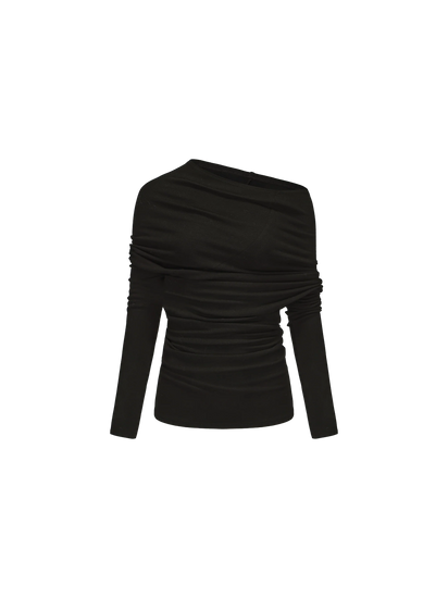 Black Asymmetric Off-shoulder Top