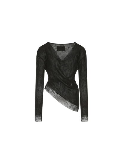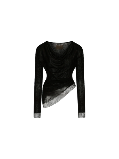 Black Asymmetric Sheer Off-shoulder Top