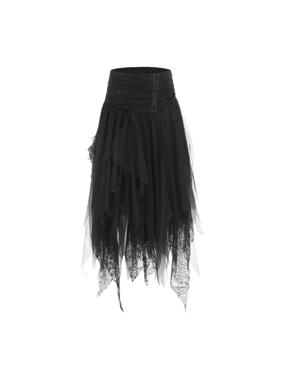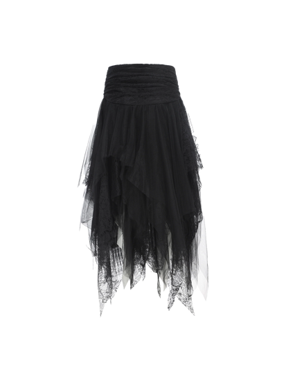 Black Lace Asymmetric Mesh Mid-length Skirt