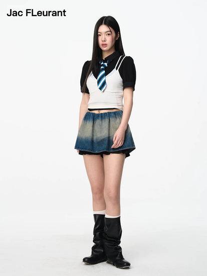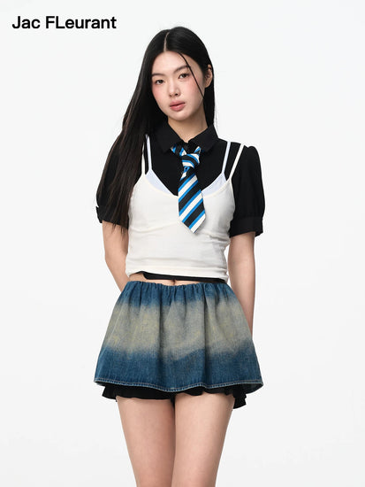 Increase quantity for Blue White Paneled Slim-fit Camisole