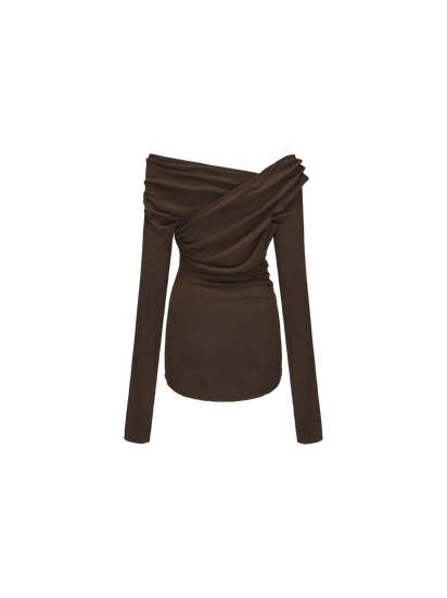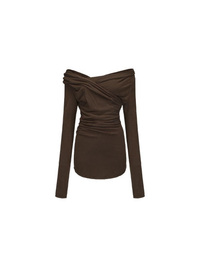 Dark Khaki Off-Shoulder Pleated Top