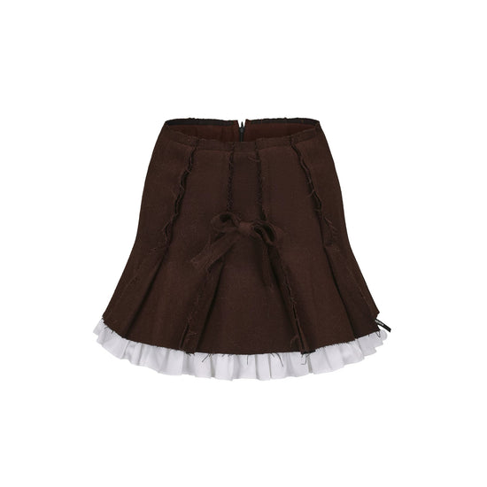 Increase quantity for Frayed Patchwork Bow Pleated Skirt