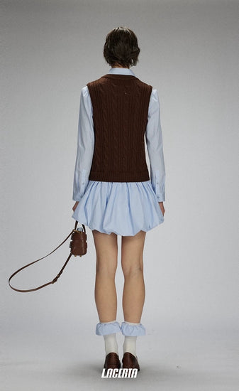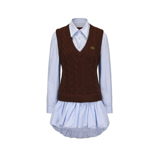 Increase quantity for Knit-and-woven Vest Panel Shirt Dress