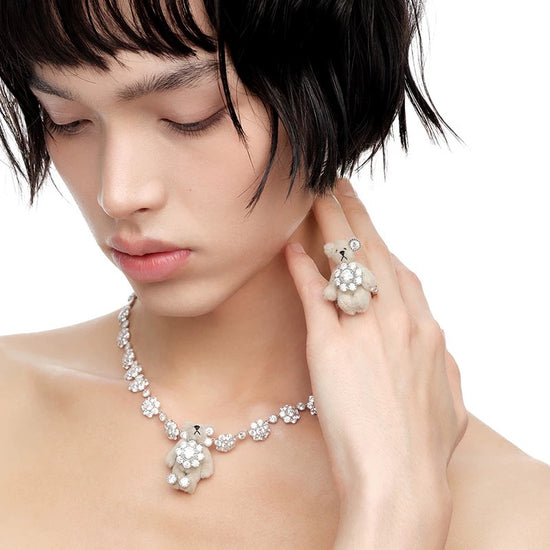 Increase quantity for Paradise / Gemstone Flower Plush Bear Ring