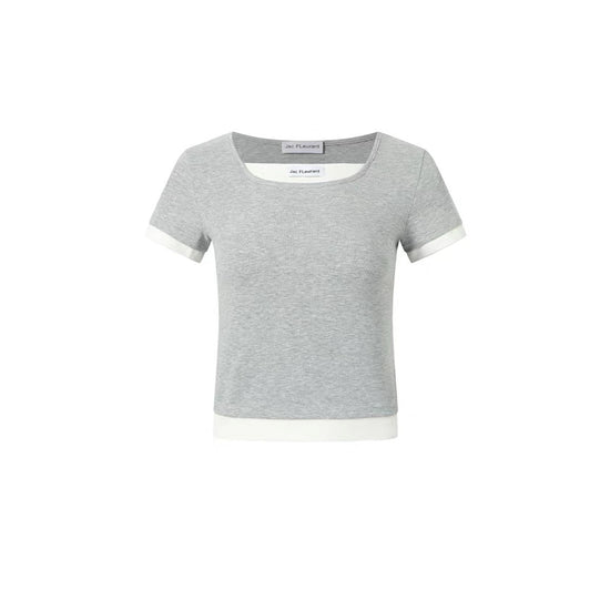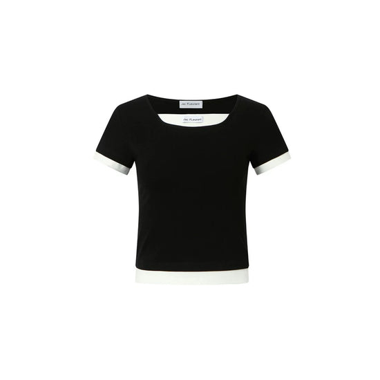 Increase quantity for Patchwork Double-Collar T-Shirt