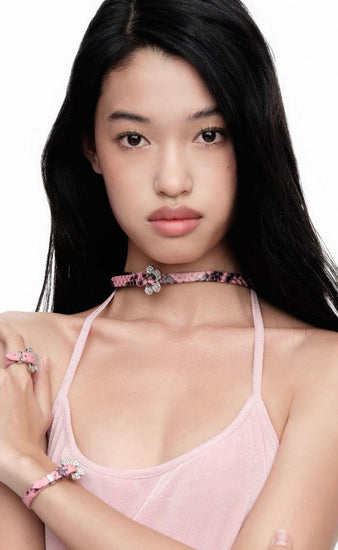 Increase quantity for Pavé Floral Buckle Leather Choker