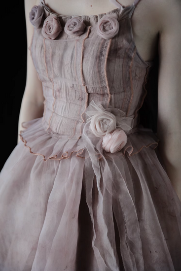 Linen-cotton jacquard pleated fabric, Eucalyptus plant-dyed printed organza