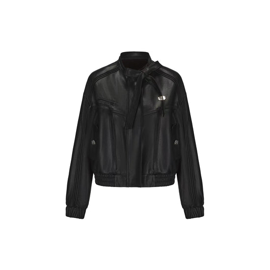 Protein Leather Bow Tie-Up Jacket