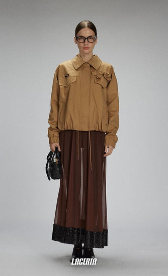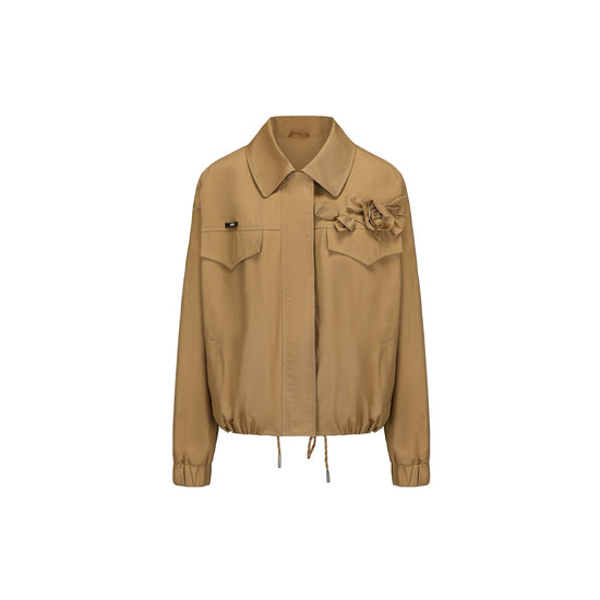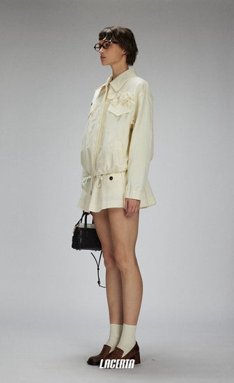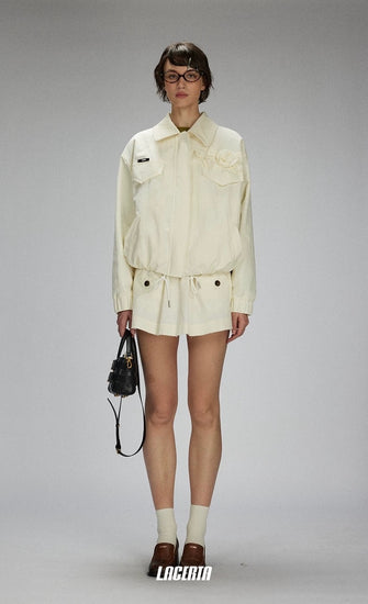 Raw Edges Flower Drawstring Cropped Jacket