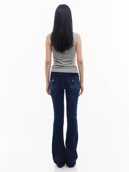 Snake Sequin Low-Rise Flared Jeans