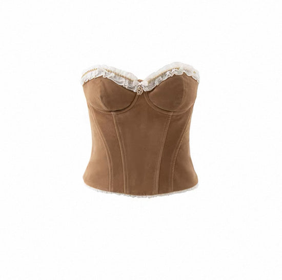 Decrease quantity for Suede Lace Rhinestone Chain Corset Top