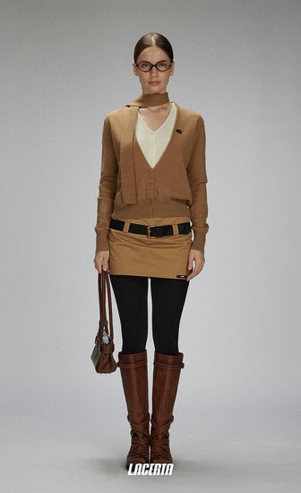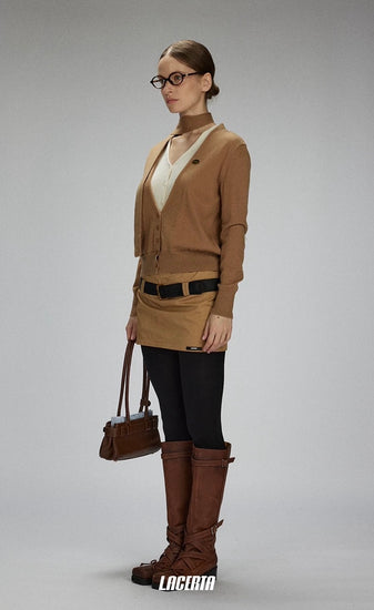 Increase quantity for V-neck Two-in-one Style Knitted Ribbon Cardigan