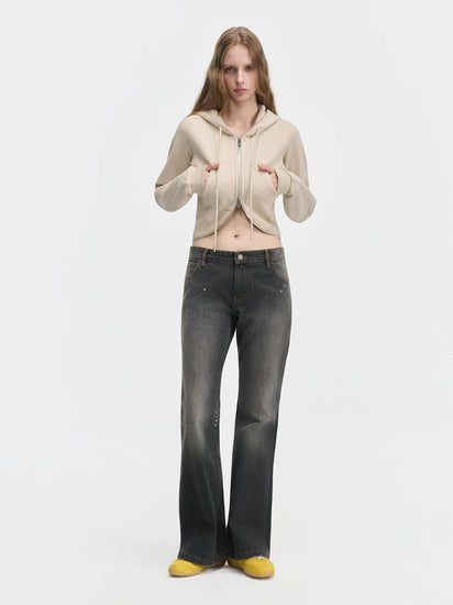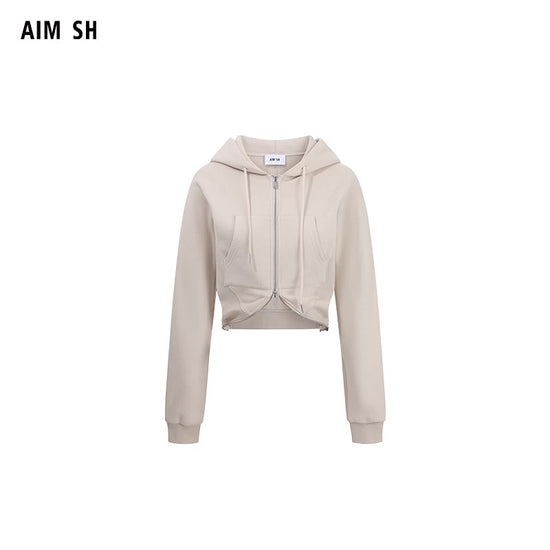 Waist-Cinching Double-Zipper Hooded Sweatshirt