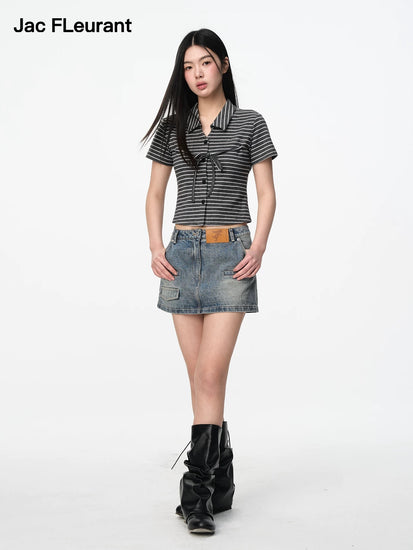 Decrease quantity for Washed Pocket Vintage Denim Skirt