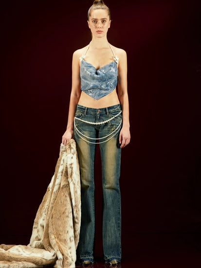 Gold Thread Embroidered Studded Flared Jeans