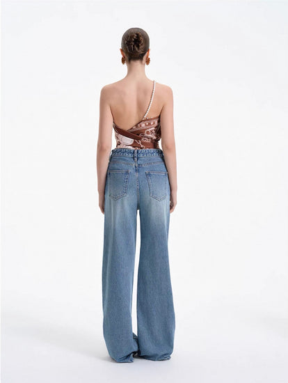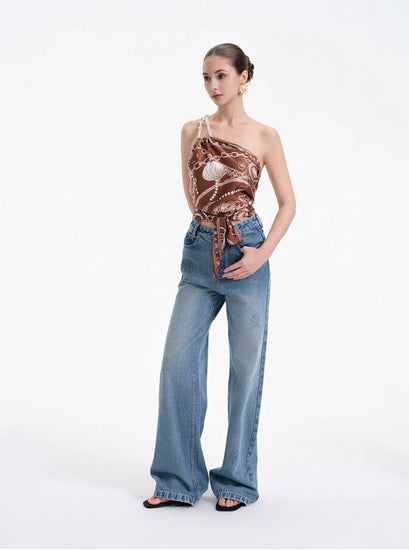 Pearl Chain Scarf-Tie Top