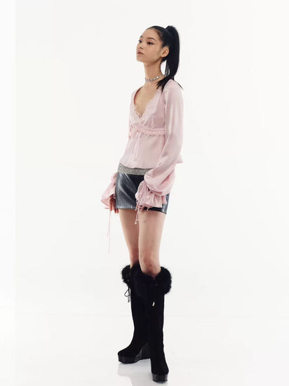 Rhinestone Chain–Embellished Faux Leather Skirt