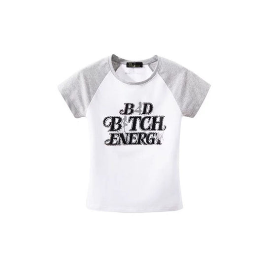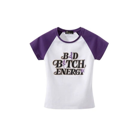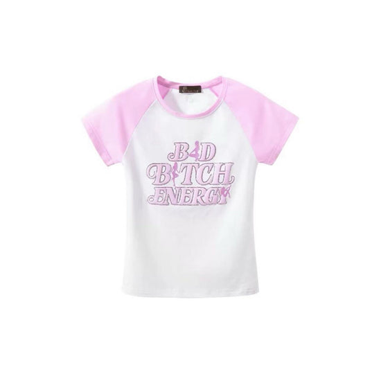 Rhinestone-Embellished Printed Raglan Top